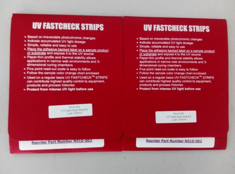 UV測試紙的使用是一種簡單有效用以測試UV強度的方法。在測試紙上有五個小格,分別可以對不同強度的UV光作出反應并改變顏色。用此種測試紙可以簡單方便地對UV光源進行檢測,從而斷定設備上的UV強度是否還足夠用來固化所需的產品。